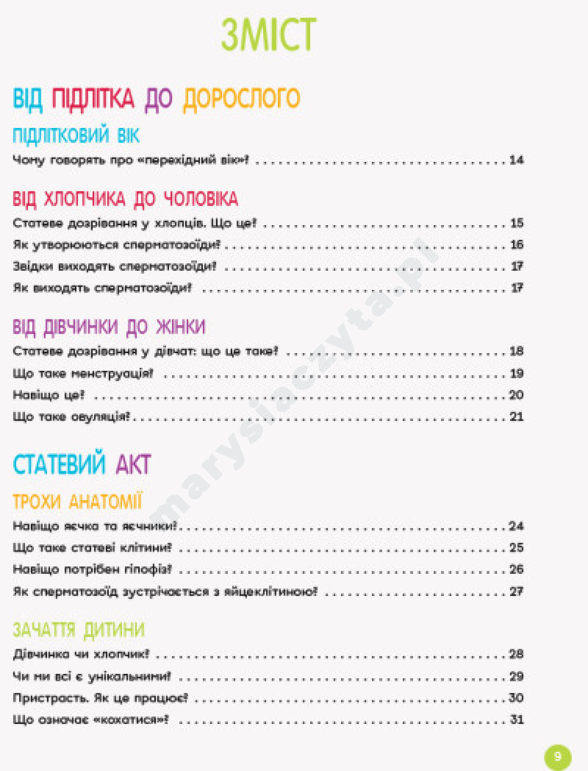 Opowiada nie tylko o fizjologii, ale także o życiu seksualnym, ciąży, rozwoju dziecka, seksie chronionym, bezpiecznym komunikowaniu się z nieznajomymi.