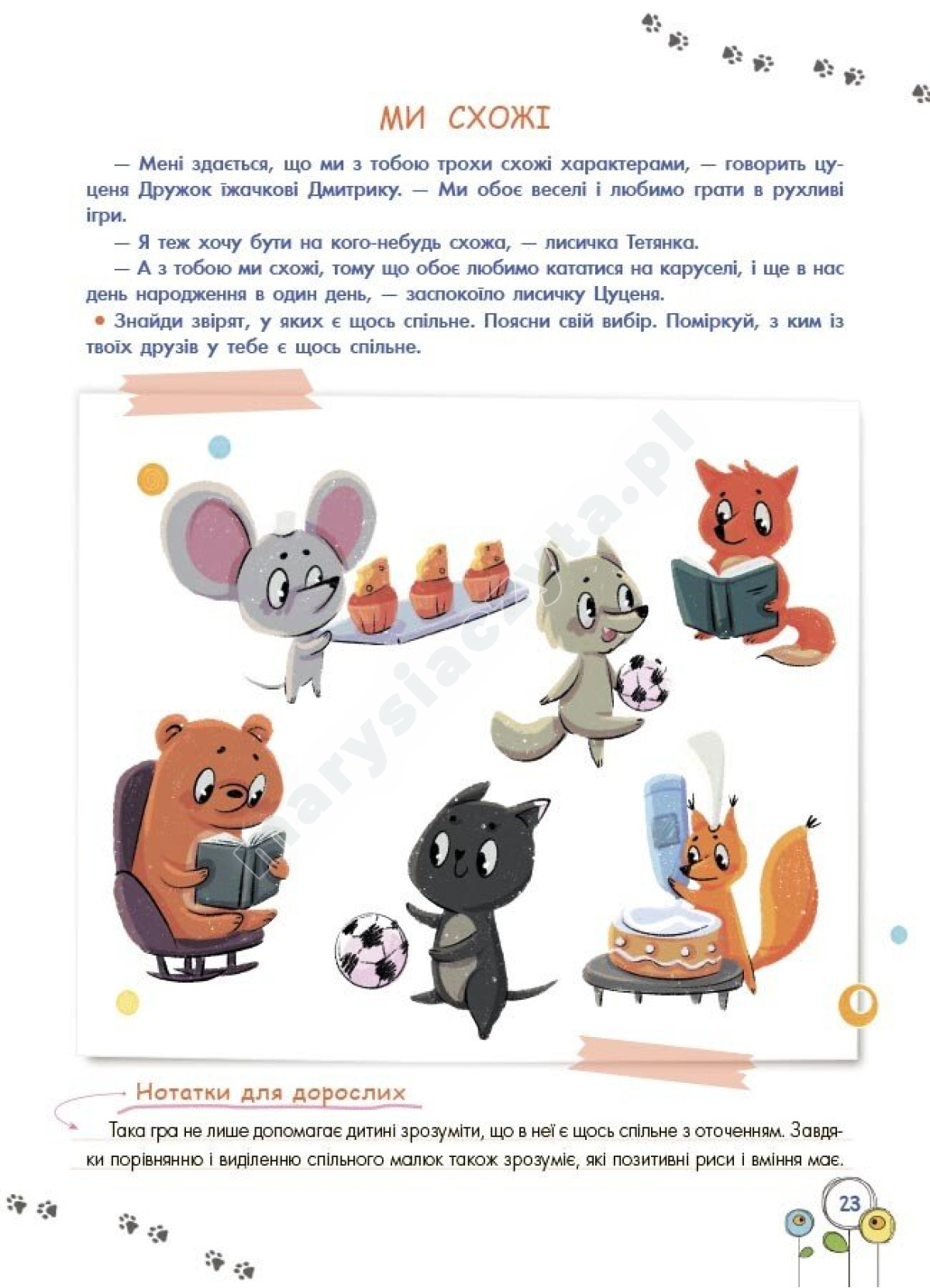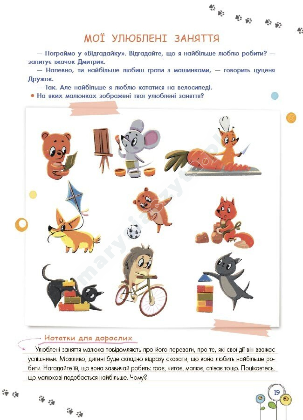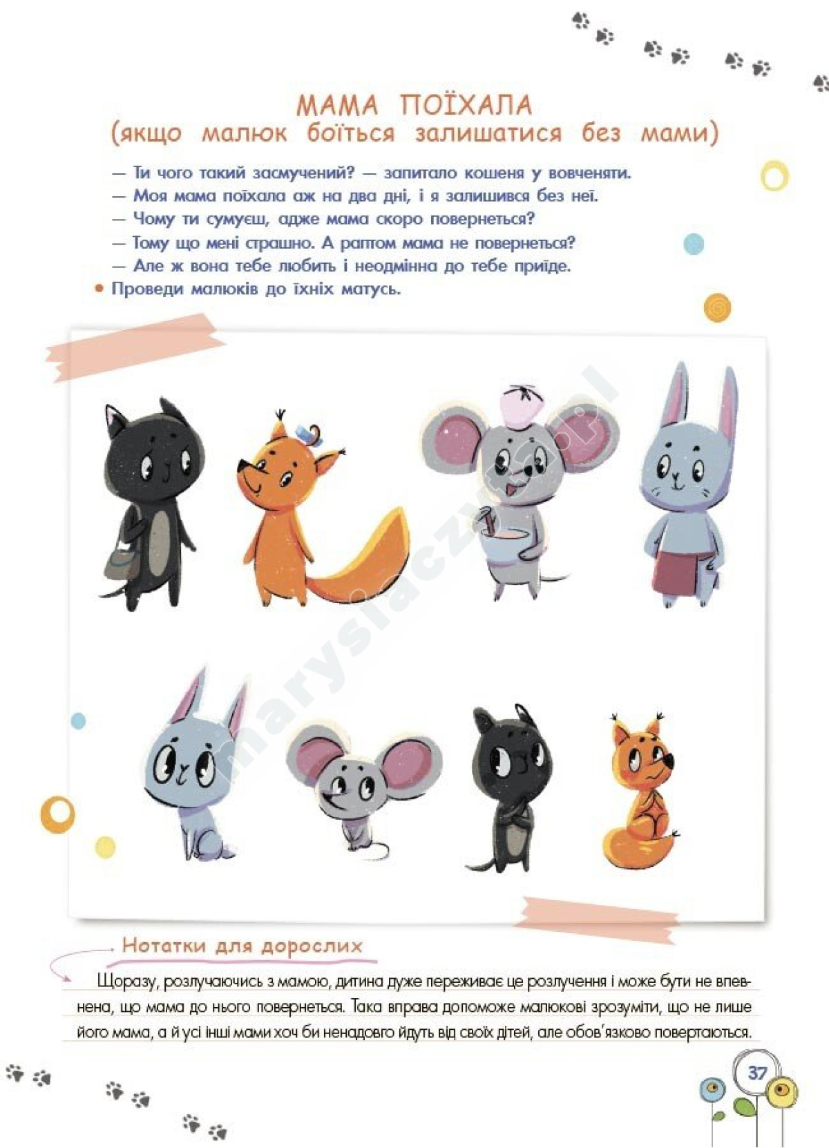 За допомогою цієї книжки дорослі зможуть не лише краще пізнати свого малюка, а й допомогти йому подолати свої страхи, навчитися дружити, розвивати уяву, творчість, навчитися бути упевненим у собі. До цікавих завдань, складених з урахуванням особливостей віку малят, наведені місткі і зрозумілі коментарі для батьків або вихователів.