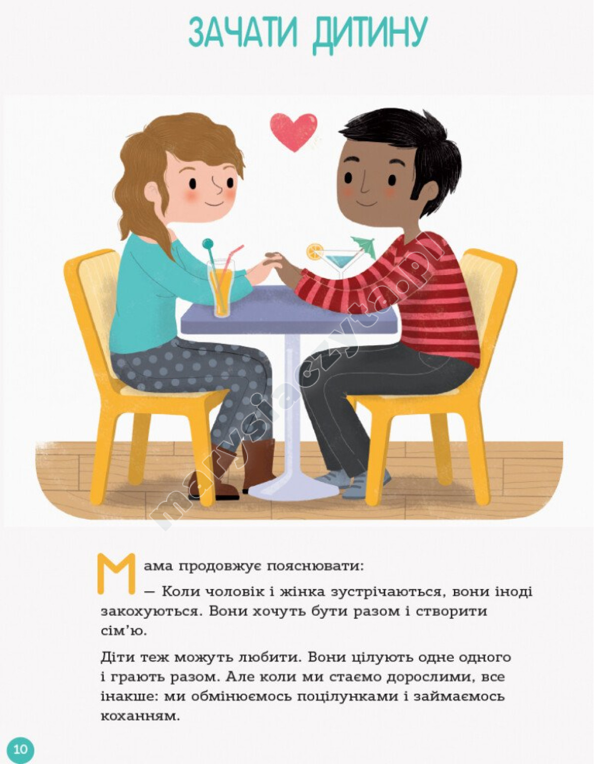 - Розповідає не лише про фізіологію, але і про статеве життя, вагітність, розвиток дитини.
