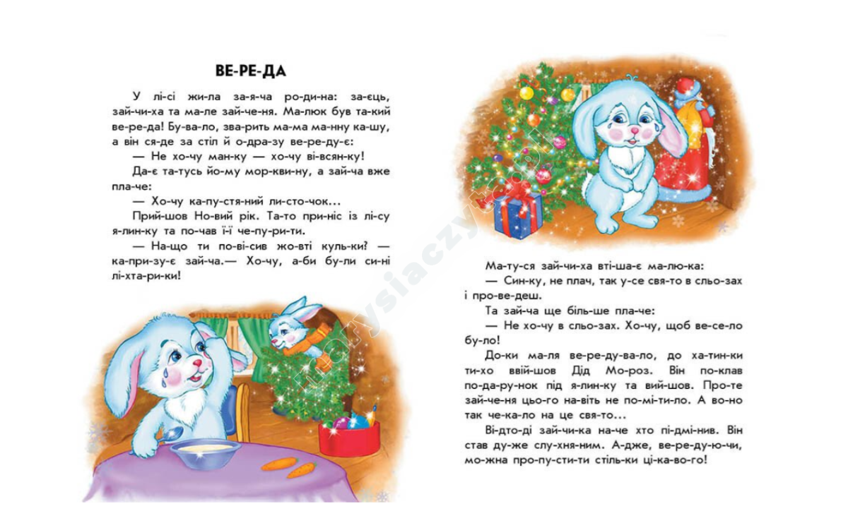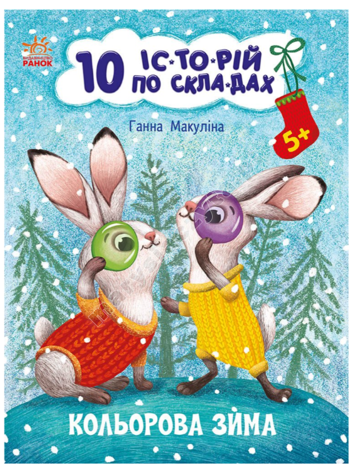 «10 історій по складах» — серія захопливих різдвяно-новорічних книг із короткими текстами для тренування читання. Усі слова в книгах подані великим шрифтом і поділені на склади. Так читачеві-початківцю буде легше розвивати нове вміння. Разом із цікавими зимовими історіями та добрими яскравими ілюстраціями дитина пізнаватиме навколишній світ, розвивати мислення, фантазію, почуття гумору та, звісно ж, навички читання. Видання призначене для дітей старшого дошкільного та молодшого шкільного віку.