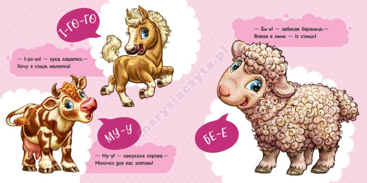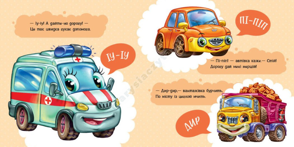 Це збірка чудових віршиків, які знайомлять малюка зі звуками навколишнього світу. Тварини, музичні інструменти, побутові речі й навіть сили природи спілкуються з дитиною і розвивають її мовлення. Разом із героями книжки маля чує й вчиться повторювати вигуки.